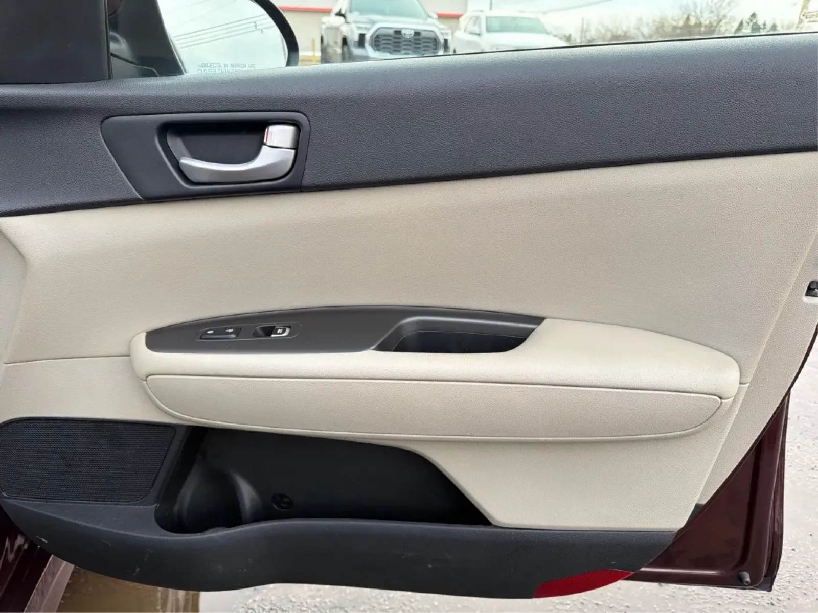 This Optima also brings style with **alloy wheels** and standout **Sangria** paint, plus useful extras like **automatic headlights** and a **cargo net** for keeping groceries secure after a stop near Dayton-Yellow Springs Road or a quick trip toward Greene Town Center.