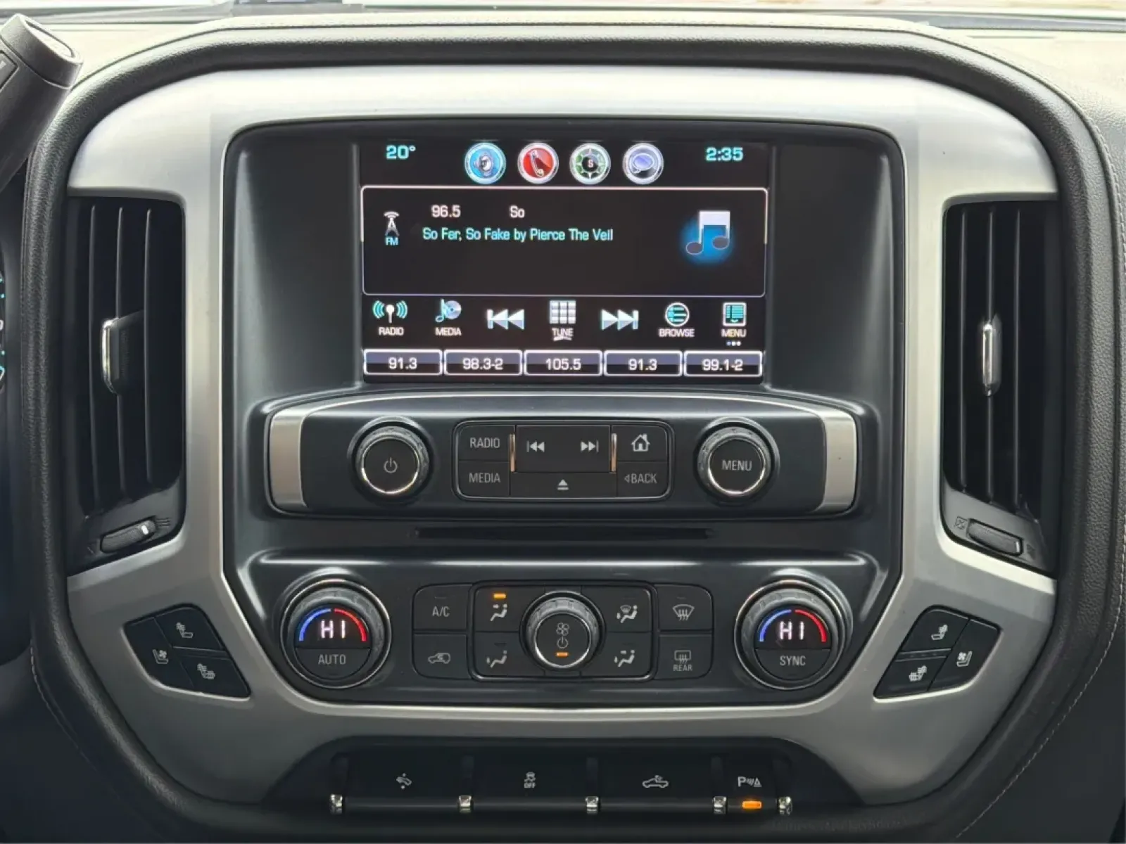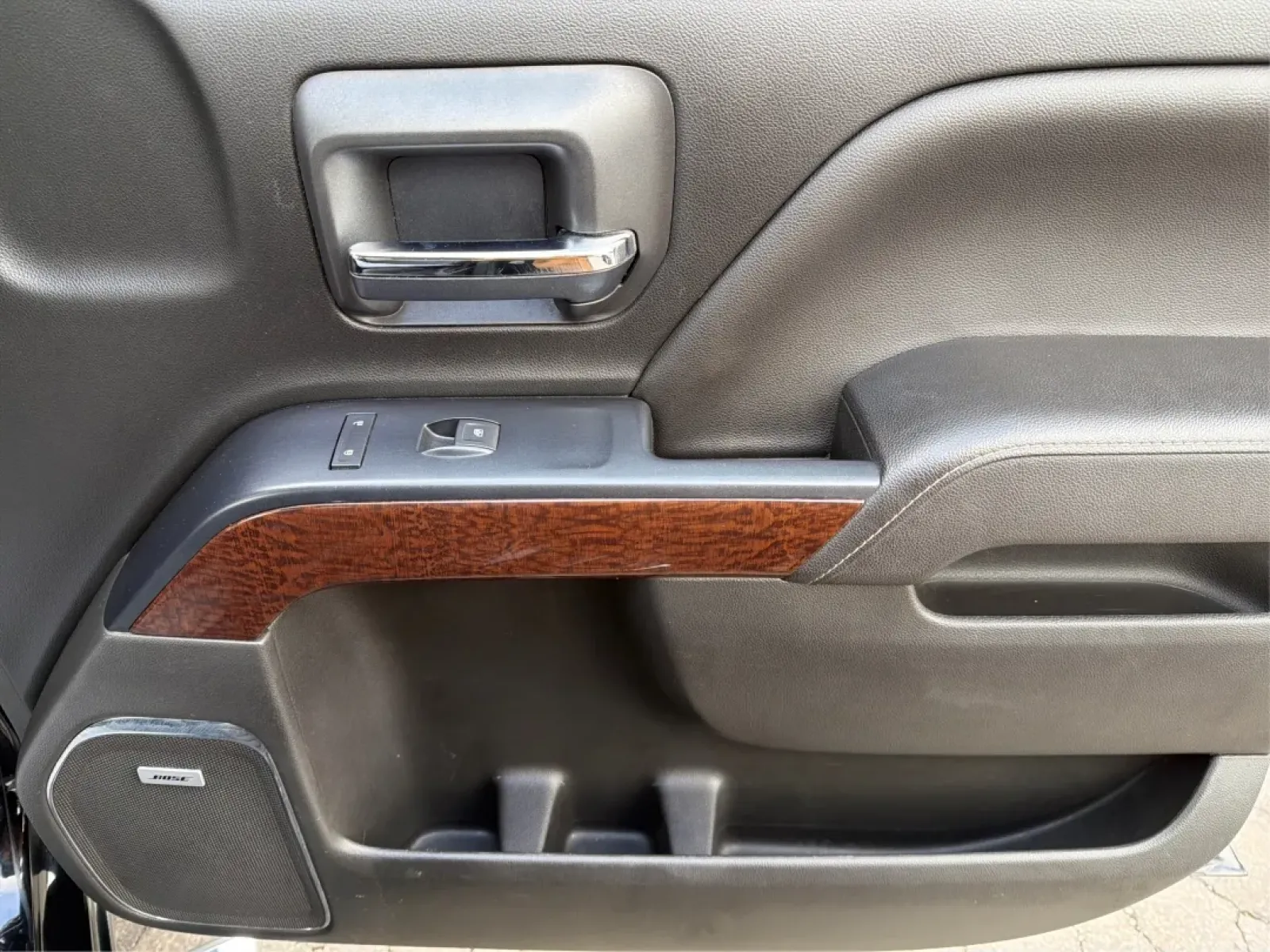 Step inside the Sierra 1500, and you'll be greeted by a spacious interior designed for comfort. The leather seats provide an upscale feel while features like heated front seats and adjustable foot pedals enhance your driving experience. The distinct wood trim and chrome accents add to the truck's elegance, ensuring that you ride in style.
