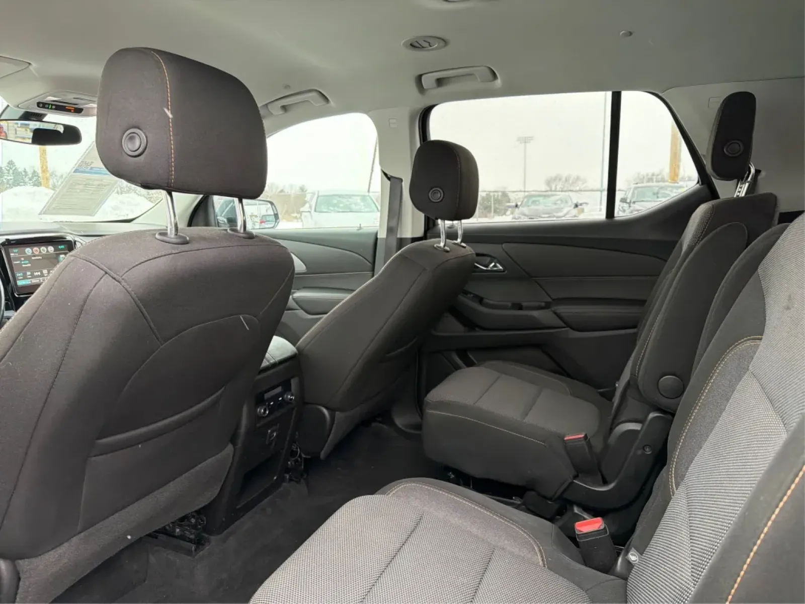 - **Comfort and Safety**: Enjoy the peace of mind with advanced safety features, including ABS brakes, multiple airbags, and child safety door locks. - **Tech and Entertainment**: The Traverse comes equipped with a DVD player, AM/FM radio, and voice-activated telephone system, ensuring endless entertainment on your adventures. - **Convenience**: Benefit from keyless entry, power windows, and a power trunk lid for added ease in daily use. - **Versatile Space**: With second and third-row removable seats, you can customize cargo space for groceries, sports gear, or whatever life throws your way.